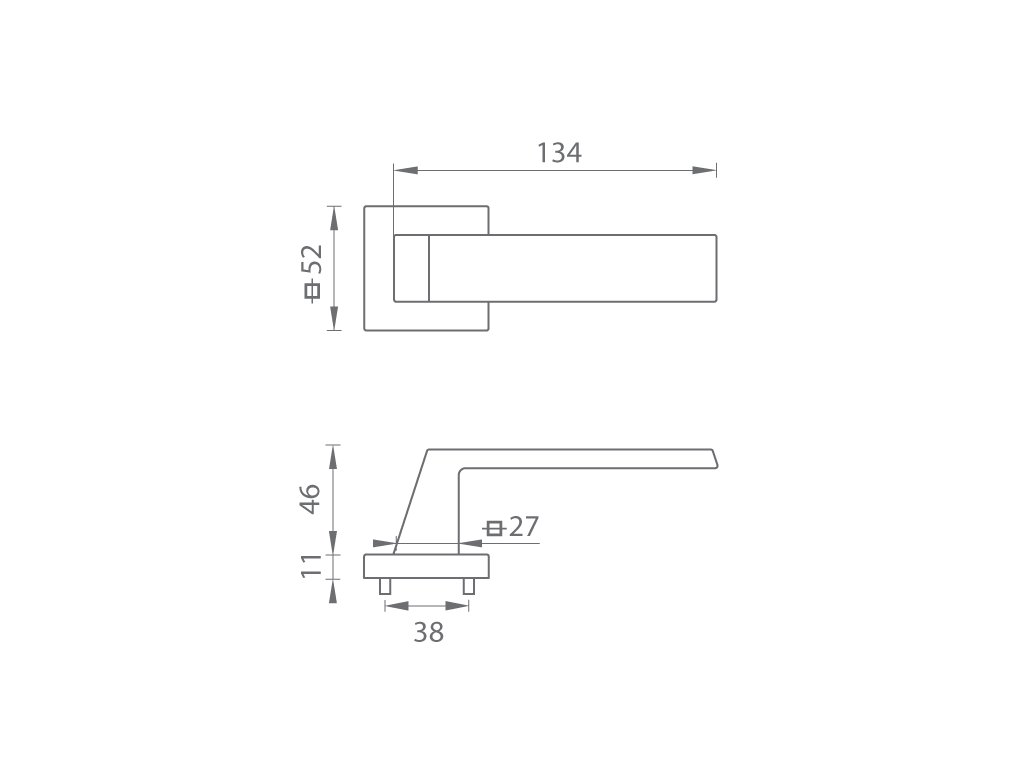 Rozetová kľučka na interiérové dvere s hranatou rozetou je vyrobená z materiálov vysokej kvality - zamak a je povrchovo upravená. Rozeta má rozmery 52 mm x 52 mm a štandardnú hrúbku 11 mm.