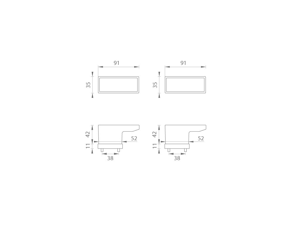 Rozetová kľučka na interiérové dvere s obdĺžnikovou rozetou je vyrobená z materiálov vysokej kvality - zamak a je povrchovo upravená. Rozeta má rozmery 52 mm x 35 mm a štandardnú hrúbku 11 mm. Samotná rozeta je súčasťou dizajnu kľučky.