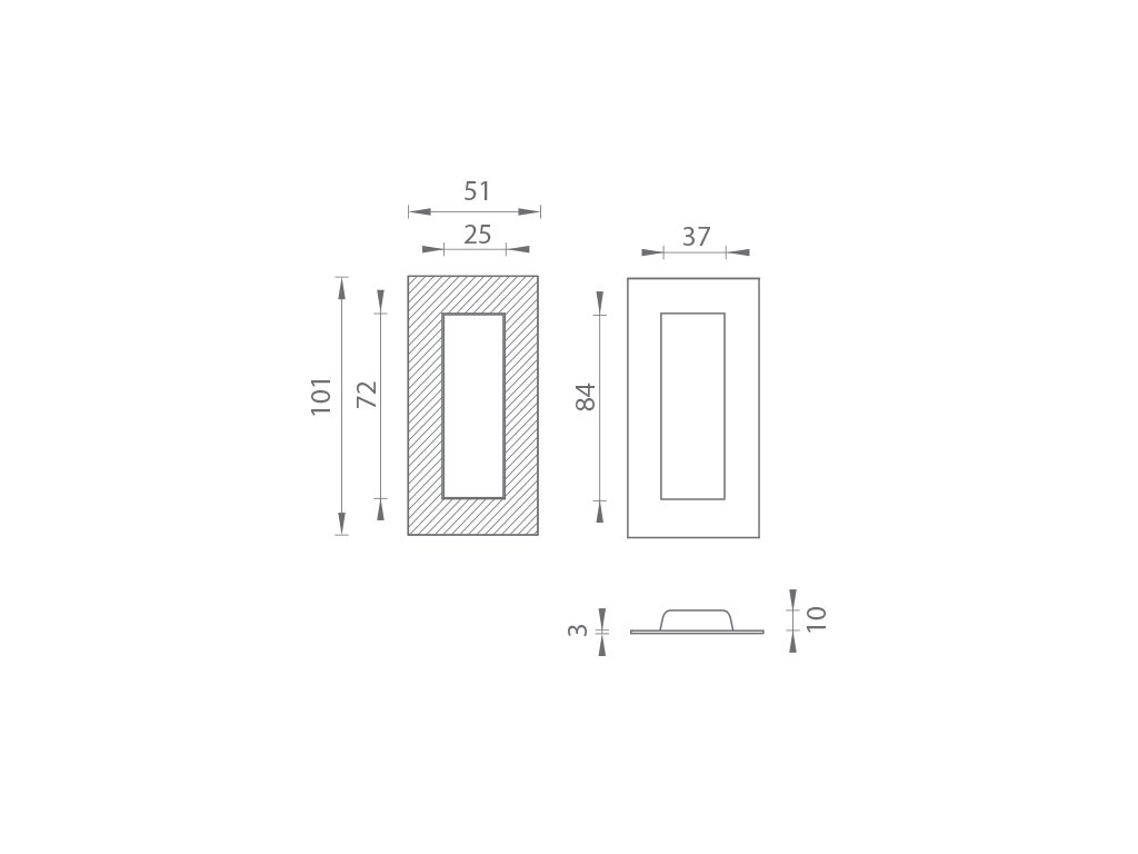Hranatá mušľa na posuvné dvere je vyrobená z vysokokvalitnej nehrdzavejúcej ocele, známej ako nerez a je povrchovo upravená. Mušľa má výšku 101 mm, šírku 51 mm, zádlab 8,5 mm a celkovú hrúbku 10 mm. Montáž mušle lepením. Cena je uvedená za kus.