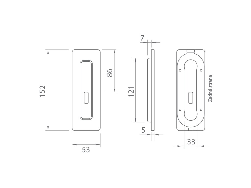 Hranatá mušľa s BB otvorom na posuvné dvere je vyrobená z kvalitného materiálu mosadz/zamak - zliatina zinku a je povrchovo upravená.