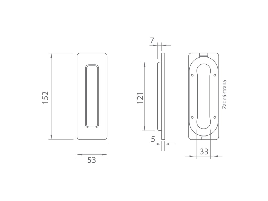 Hranatá mušľa bez otvoru na posuvné dvere je vyrobená z kvalitného materiálu mosadz/zamak - zliatina zinku a je povrchovo upravená.