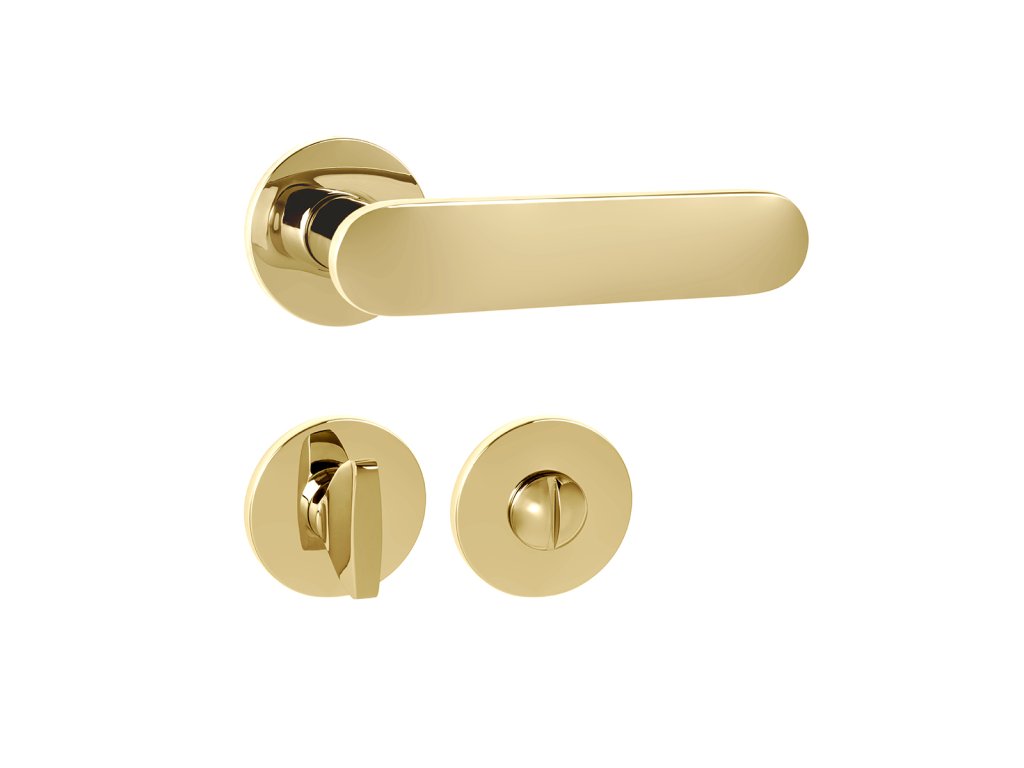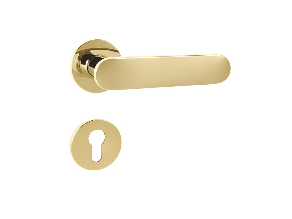Rozetová kľučka na interiérové dvere s okrúhlou rozetou je vyrobená z materiálov vysokej kvality - mosadz a je povrchovo upravená. Rozeta má priemer 52 mm a hrúbku len 5 mm.