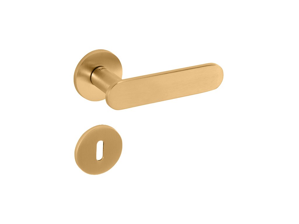 Rozetová kľučka na interiérové dvere s okrúhlou rozetou je vyrobená z materiálov vysokej kvality - mosadz a je povrchovo upravená. Rozeta má priemer 52 mm a hrúbku len 5 mm.