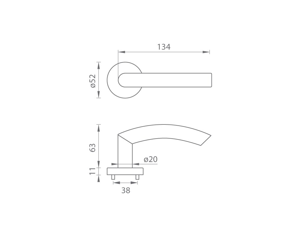 Rozetová kľučka na interiérové dvere s okrúhlou rozetou je vyrobená z vysokokvalitnej nehrdzavejúcej ocele, známej ako nerez a je povrchovo upravená. Rozeta má priemer 52 mm a štandardnú hrúbku 11 mm.