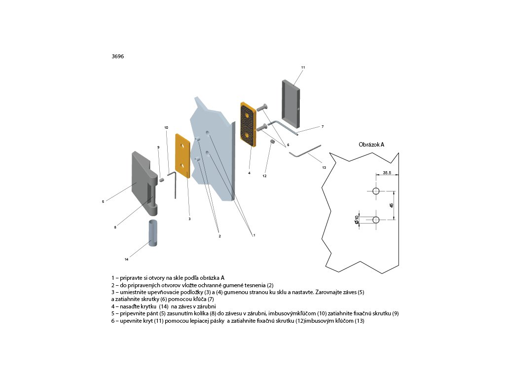Hrúbka skla min. 8 mm – max. 12 mm.