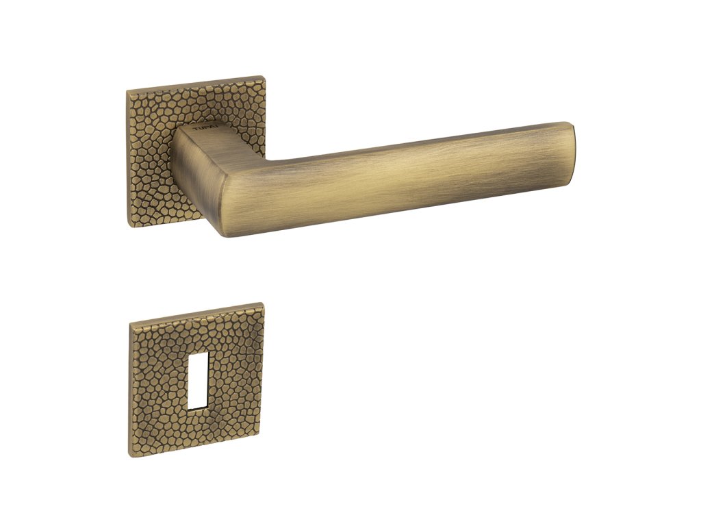 Dizajnová rozetová kľučka na interiérové dvere vyrobená z kvalitného materiálu - mosadz. Štvorcová rozeta má rozmer 52 x 52 mm a hrúbku len 5 mm.