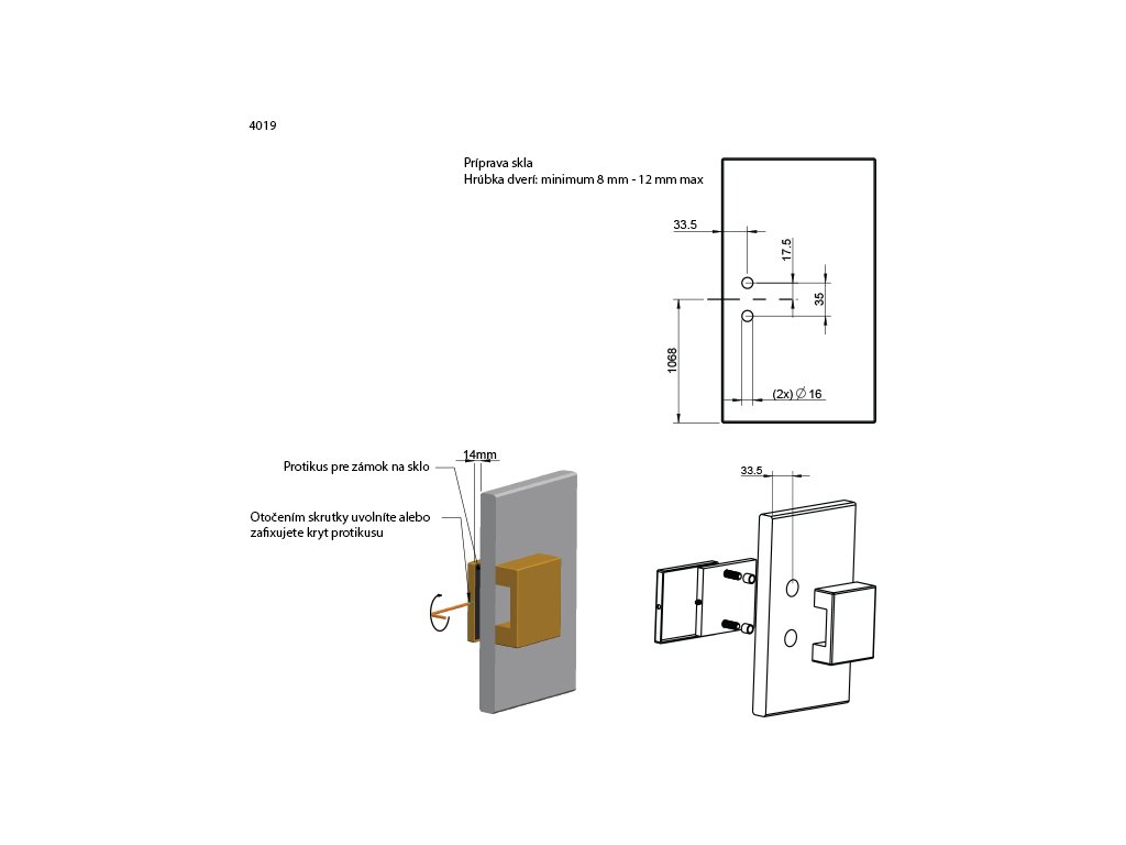 TI - Protikus pre zámok na sklo 4019 BIM - biela matná (152)