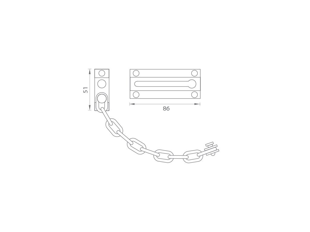 Bezpečnostná retiazka na dvere je vyrobená z materiálov vysokej kvality - zamak a je povrchovo upravená.