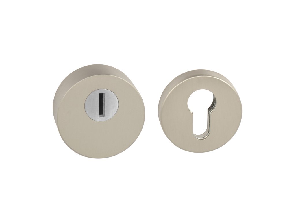 Bezpečnostná interiérová okrúhla rozeta s prekrytím cylindrickej vložky je vyrobená z materiálov vysokej kvality – zamak/oceľ a je povrchovo upravená.