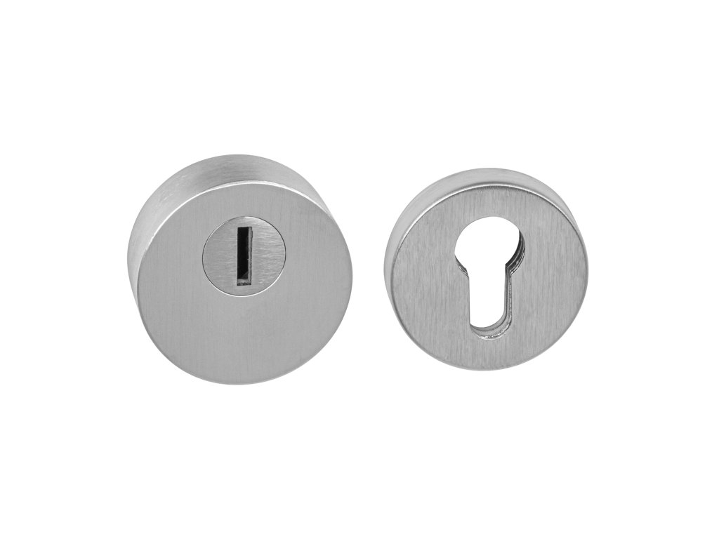 Bezpečnostná interiérová okrúhla rozeta s prekrytím cylindrickej vložky je vyrobená z materiálov vysokej kvality – zamak/oceľ a je povrchovo upravená.
