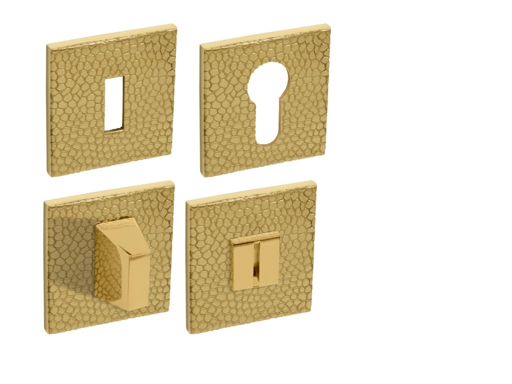 Hranatá rozeta je vyrobená z materiálov vysokej kvality - mosadz a je povrchovo upravená. Rozeta má rozmery 52 mm x 52 mm, hrúbku len 5 mm a hranatý otvor pre interiérový klúč (BBQ), otvor pre cylindrickú vložku (PZ) alebo WC set s vmontovaným kľúčom.