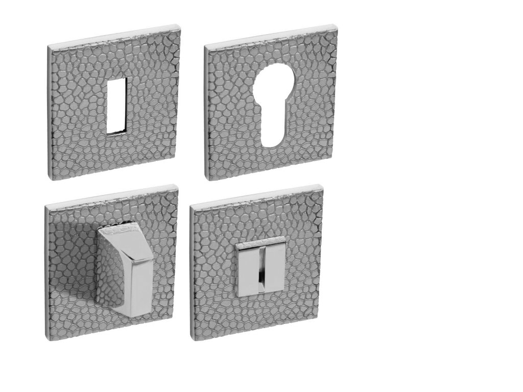 Hranatá rozeta je vyrobená z materiálov vysokej kvality - mosadz a je povrchovo upravená. Rozeta má rozmery 52 mm x 52 mm, hrúbku len 5 mm a hranatý otvor pre interiérový klúč (BBQ), otvor pre cylindrickú vložku (PZ) alebo WC set s vmontovaným kľúčom.