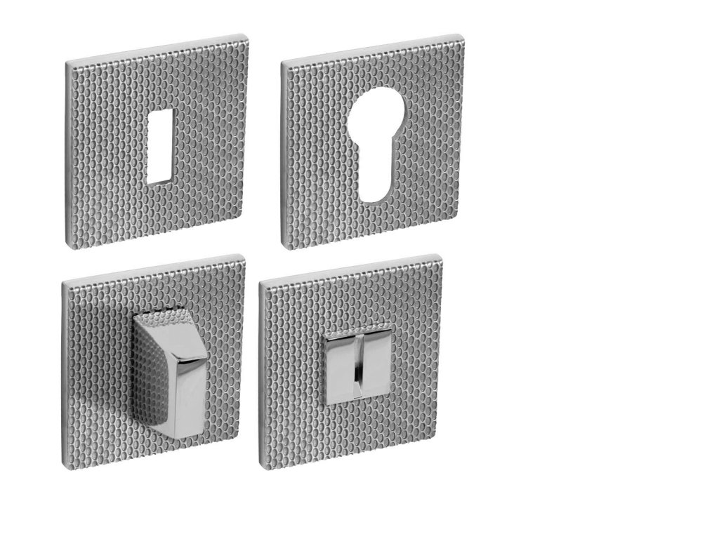 Hranatá rozeta je vyrobená z materiálov vysokej kvality - mosadz a je povrchovo upravená. Rozeta má rozmery 52 mm x 52 mm, hrúbku len 5 mm a hranatý otvor pre interiérový klúč (BBQ), otvor pre cylindrickú vložku (PZ) alebo WC set s vmontovaným kľúčom.