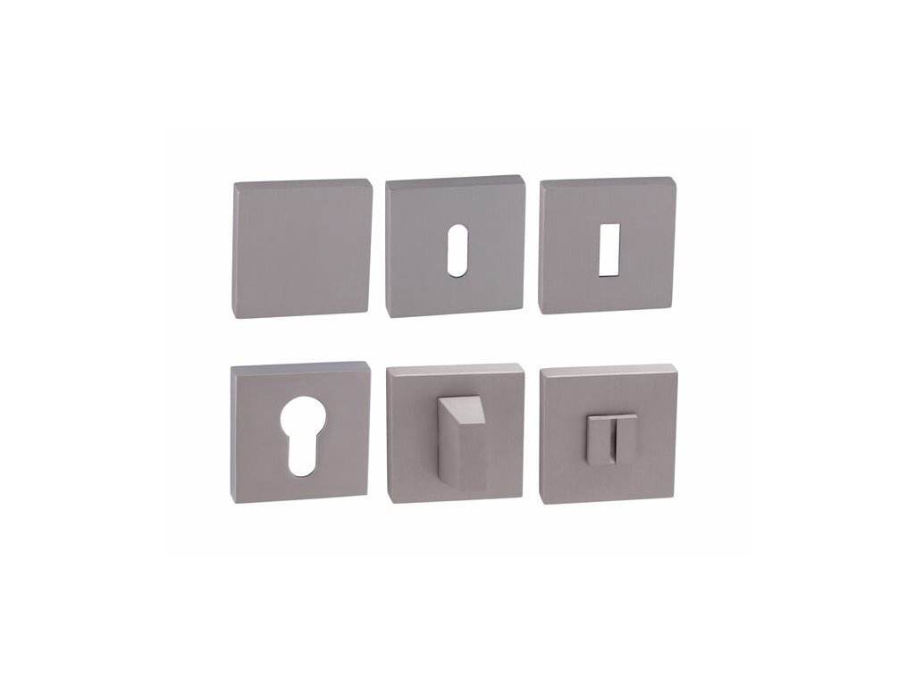 Hranatá rozeta je vyrobená z materiálov vysokej kvality - mosadz a je povrchovo upravená. Rozeta má rozmery 52 mm x 52 mm, hrúbku 11 mm a oválny otvor pre interiérový kľúč (BB), hranatý otvor pre interiérový klúč (BBQ), otvor pre cylindrickú vložku (PZ), WC set s vmontovaným kľúčom alebo rozetu bez otvoru tzv. záslepka. Balenie obsahuje 2 kusy roziet (pár) a rozety WC sú v balení ako set.