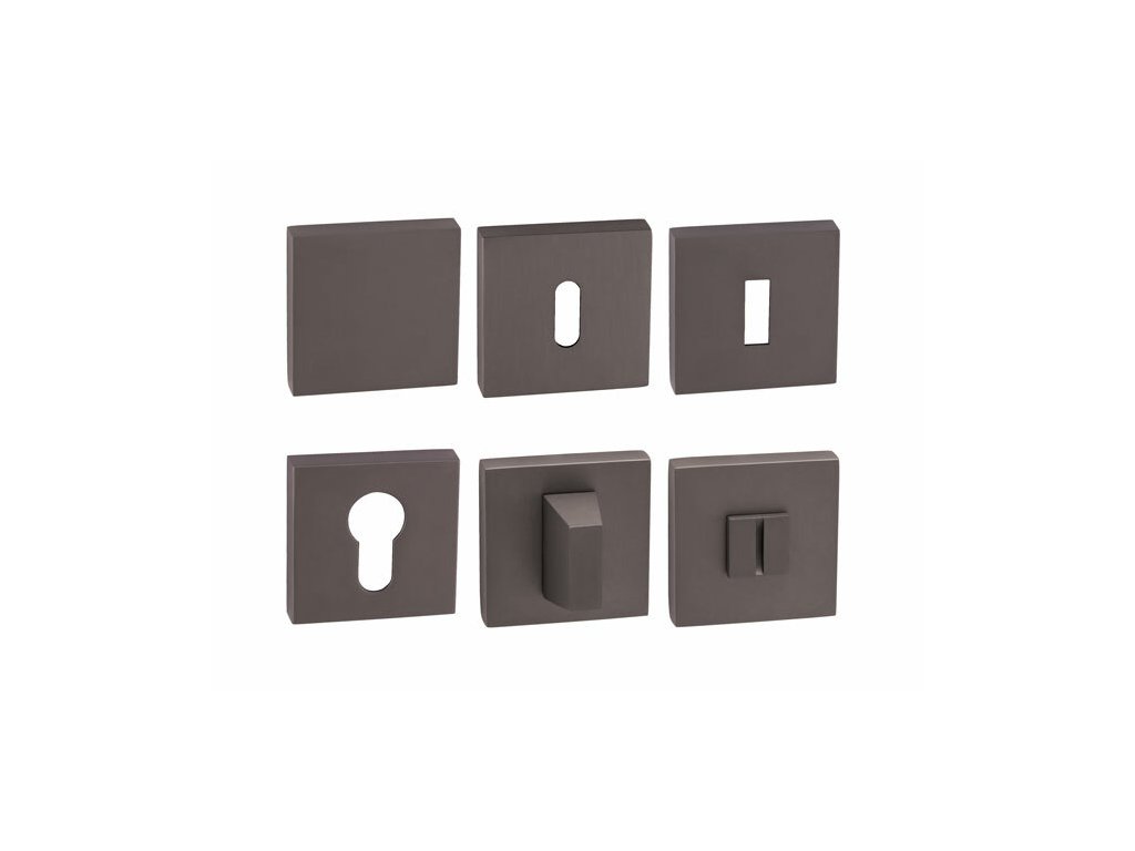 Hranatá rozeta je vyrobená z materiálov vysokej kvality - mosadz a je povrchovo upravená. Rozeta má rozmery 52 mm x 52 mm, hrúbku 11 mm a oválny otvor pre interiérový kľúč (BB), hranatý otvor pre interiérový klúč (BBQ), otvor pre cylindrickú vložku (PZ), WC set s vmontovaným kľúčom alebo rozetu bez otvoru tzv. záslepka. Balenie obsahuje 2 kusy roziet (pár) a rozety WC sú v balení ako set.