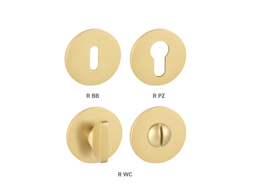 Okrúhla rozeta je vyrobená z materiálov vysokej kvality - mosadz a je povrchovo upravená. Rozeta má priemer 52 mm, hrúbku len 5 mm a oválny otvor pre interiérový kľúč (BB), otvor pre cylindrickú vložku (PZ) alebo WC set s vmontovaným kľúčom. Balenie obsahuje 2 kusy roziet (pár) a rozety WC sú v balení ako set. Rozeta obsahuje patentovanú TUPAI mechaniku s nylonovo-kovovou podložkou s výstupkami - klikmi, ktorá uľahčuje montáž krytky rozety a zabezpečuje stabilné upevnenie bez možnosti samovoľného pohybu krytky.