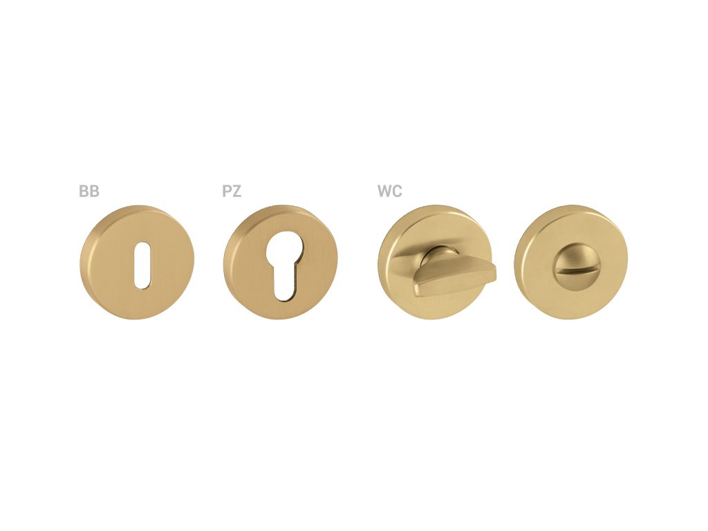 Okrúhla rozeta je vyrobená z materiálov vysokej kvality - mosadz a je povrchovo upravená. Rozeta má priemer 52 mm, hrúbku 11 mm a oválny otvor pre interiérový kľúč (BB), otvor pre cylindrickú vložku (PZ) alebo WC set s vmontovaným kľúčom.Balenie obsahuje 2 kusy roziet (pár) a rozety WC sú v balení ako set.