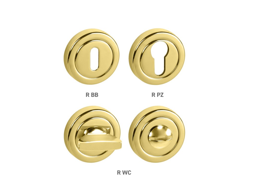 Okrúhla rozeta ku kľučke na dvere je vyrobená z materiálov vysokej kvality - mosadz a je povrchovo upravená.