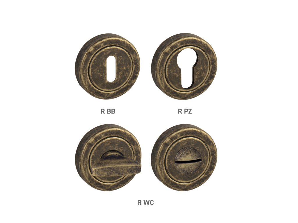 Okrúhla rozeta ku kľučke na dvere je vyrobená z materiálov vysokej kvality - mosadz a je povrchovo upravená.