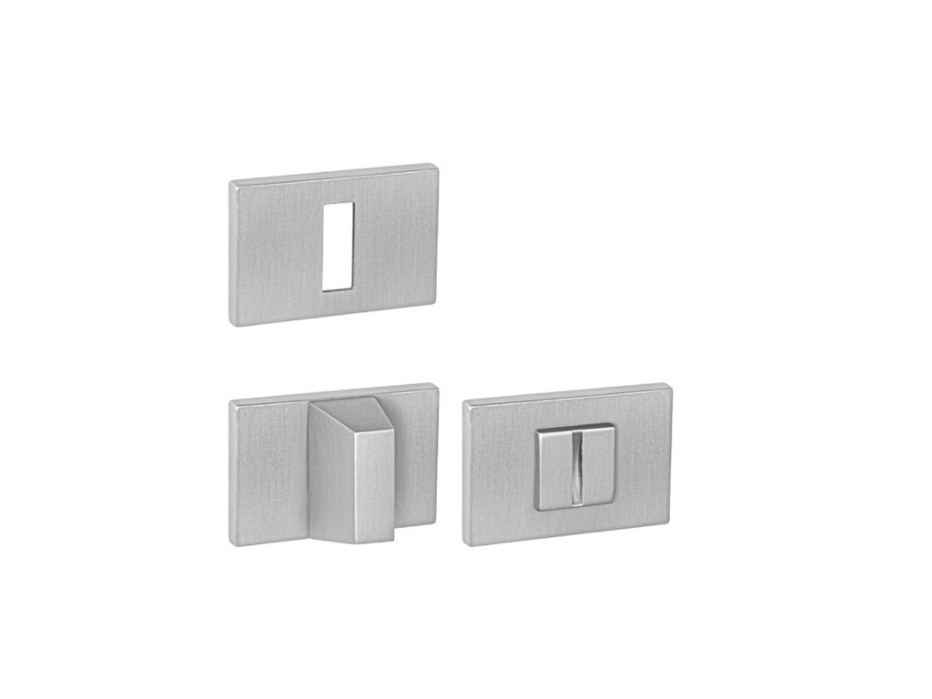 Rozeta má hranatý otvor pre interiérový kľúč (BBQ) alebo WC set s vmontovaným kľúčom. Balenie obsahuje 2 kusy roziet (pár) a rozety WC sú v balení ako set.