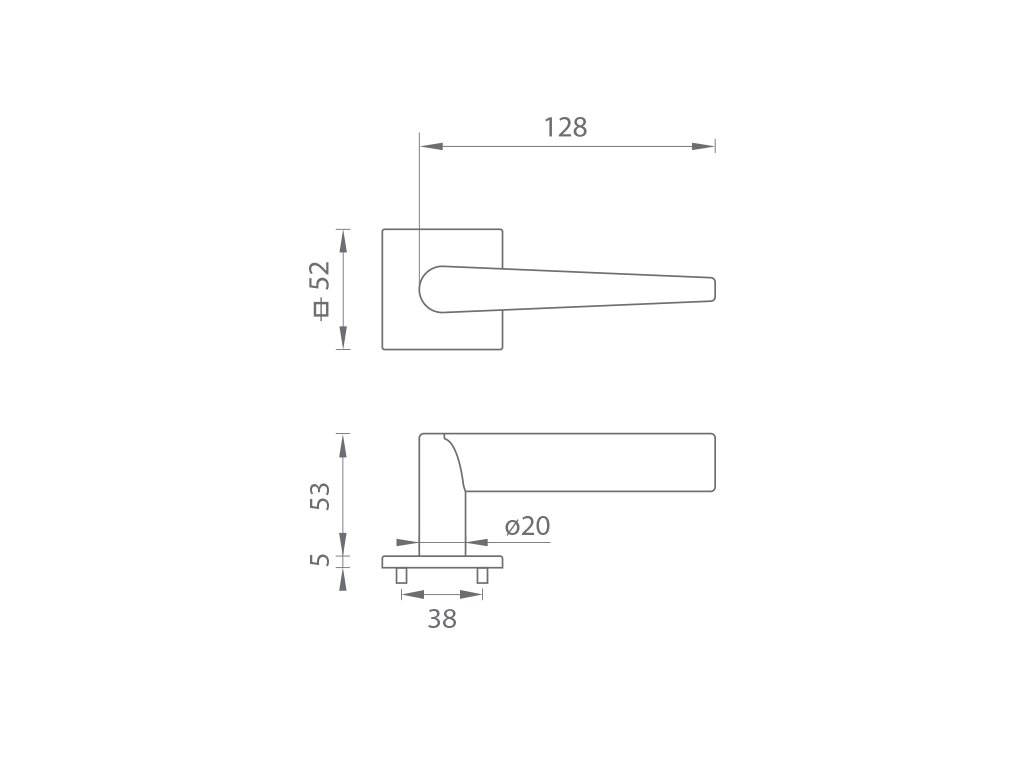 Rozetová kľučka na interiérové dvere s hranatpou rozetou je vyrobená z materiálov vysokej kvality - mosadz a je povrchovo upravená. Rozeta má rozmery 52 mm x 52 mm a hrúbku len 5 mm.