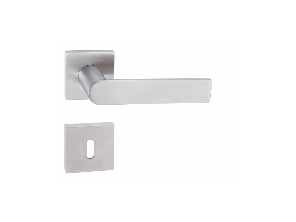 Rozetová kľučka na interiérové dvere s hranatou rozetou je vyrobená z vysokokvalitnej nehrdzavejúcej ocele, známej ako nerez a je povrchovo upravená. Rozeta má rozmery 52 mm x 52 mm a štandardnú hrúbku 11 mm.
