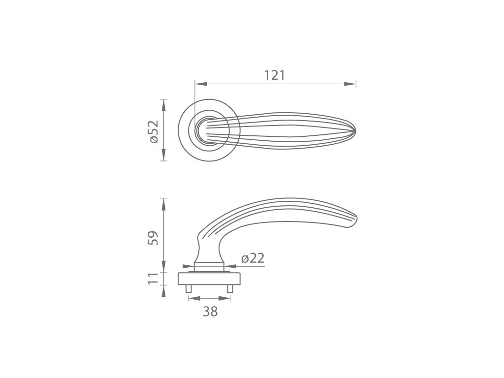 Rozetová kľučka na interiérové dvere s okrúhlou rozetou je vyrobená z materiálov vysokej kvality - mosadz a je povrchovo upravená. Rozeta má priemer 52 mm a štandardnú hrúbku 11 mm.