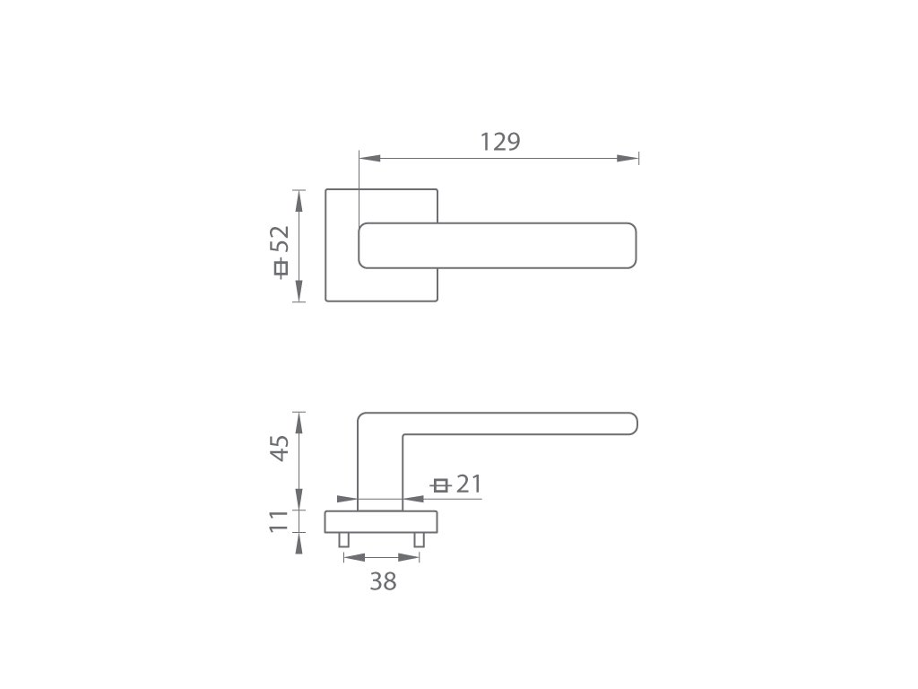 Rozetová kľučka na interiérové dvere s hranatou rozetou je vyrobená z materiálov vysokej kvality - mosadz a je povrchovo upravená. Rozeta má rozmery 52 mm x 52 mm a štandardnú hrúbku 11 mm.