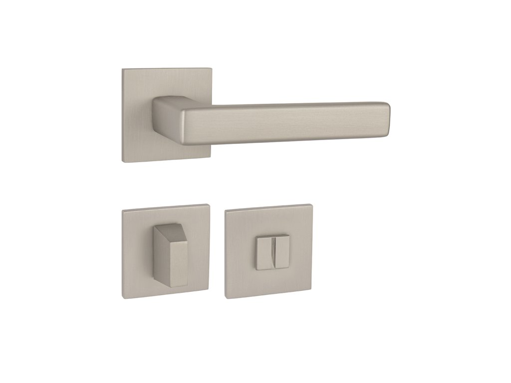 Rozetová kľučka na interiérové dvere s hranatpou rozetou je vyrobená z materiálov vysokej kvality - mosadz a je povrchovo upravená. Rozeta má rozmery 52 mm x 52 mm a hrúbku len 5 mm.