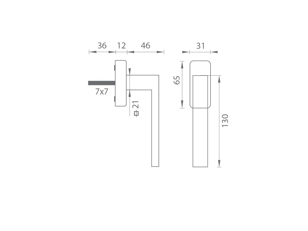 Kľučka na eurookno s hranatou rozetou je vyrobená z materiálov vysokej kvality – zamak a je povrchovo upravená. Rozeta má rozmery 31 mm x 65 mm a hrúbku 11 mm.