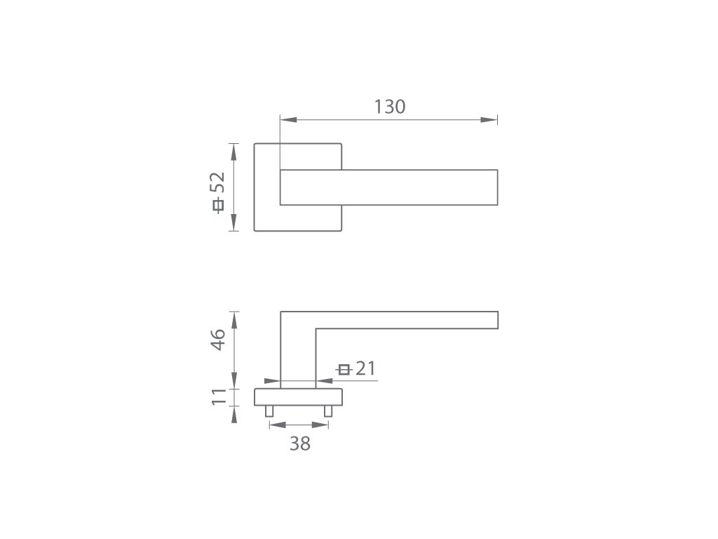 Rozetová kľučka na interiérové dvere s hranatou rozetou je vyrobená z materiálov vysokej kvality - zamak a je povrchovo upravená. Rozeta má rozmery 52 mm x 52 mm a štandardnú hrúbku 11 mm.