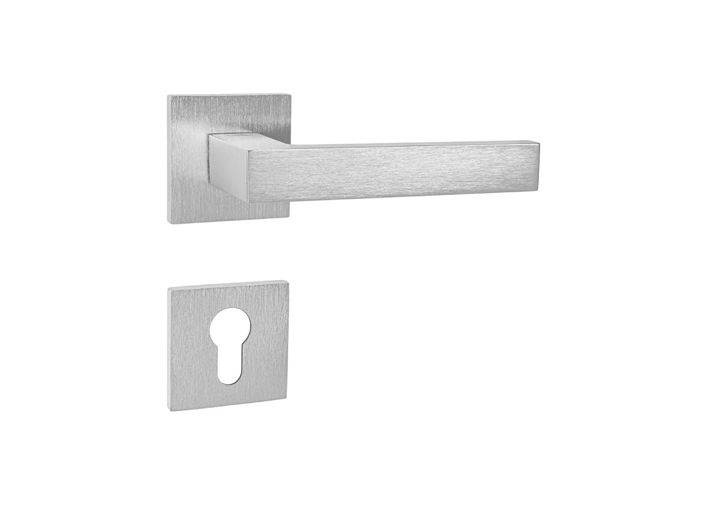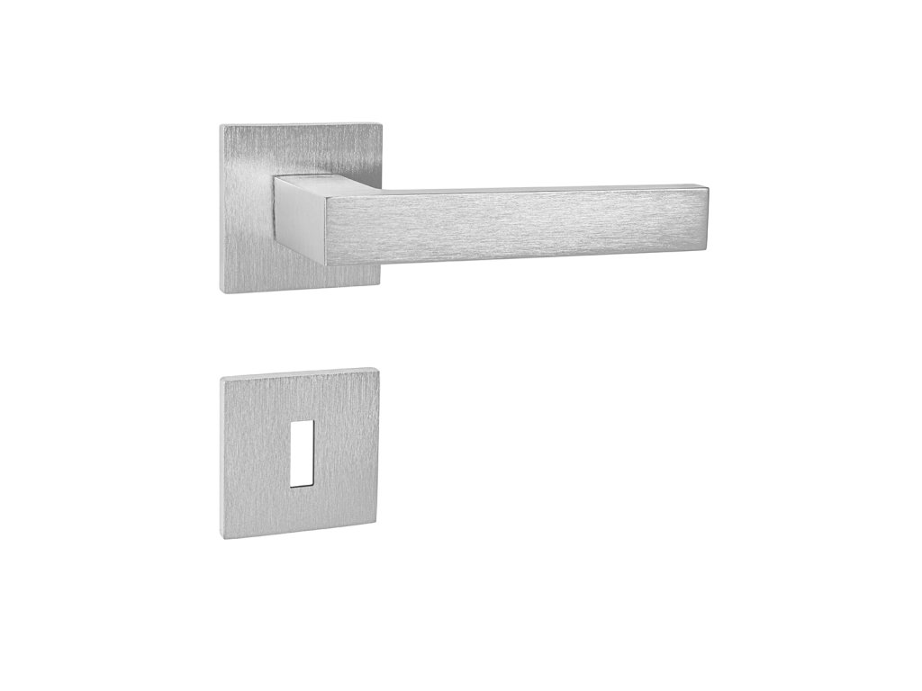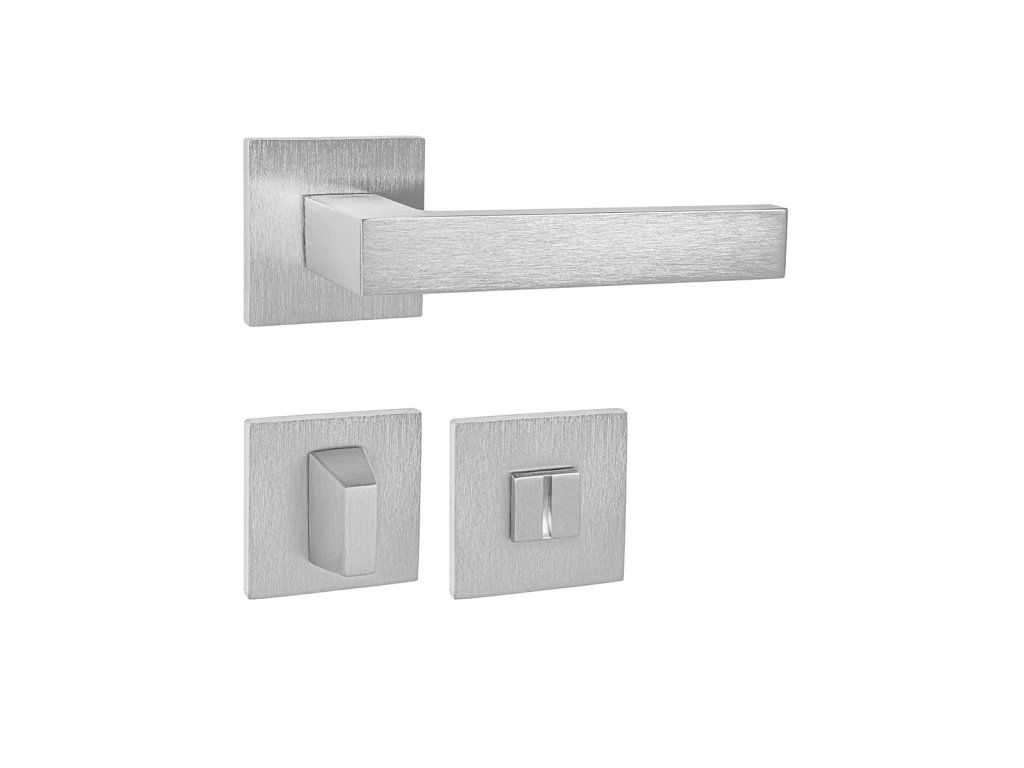 Rozetová kľučka na interiérové dvere s hranatou rozetou je vyrobená z materiálov vysokej kvality - zamak a je povrchovo upravená. Rozeta má rozmery 52 mm x 52 mm a hrúbku len 5 mm.