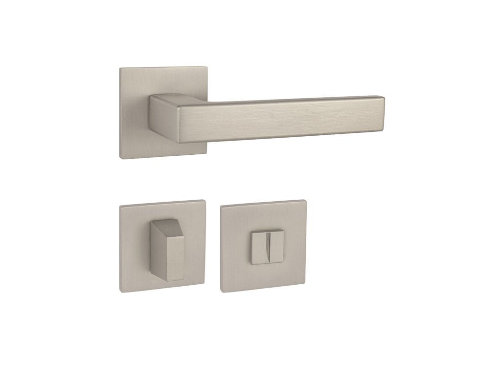 Rozetová kľučka na interiérové dvere s hranatou rozetou je vyrobená z materiálov vysokej kvality - zamak a je povrchovo upravená. Rozeta má rozmery 52 mm x 52 mm a hrúbku len 5 mm.