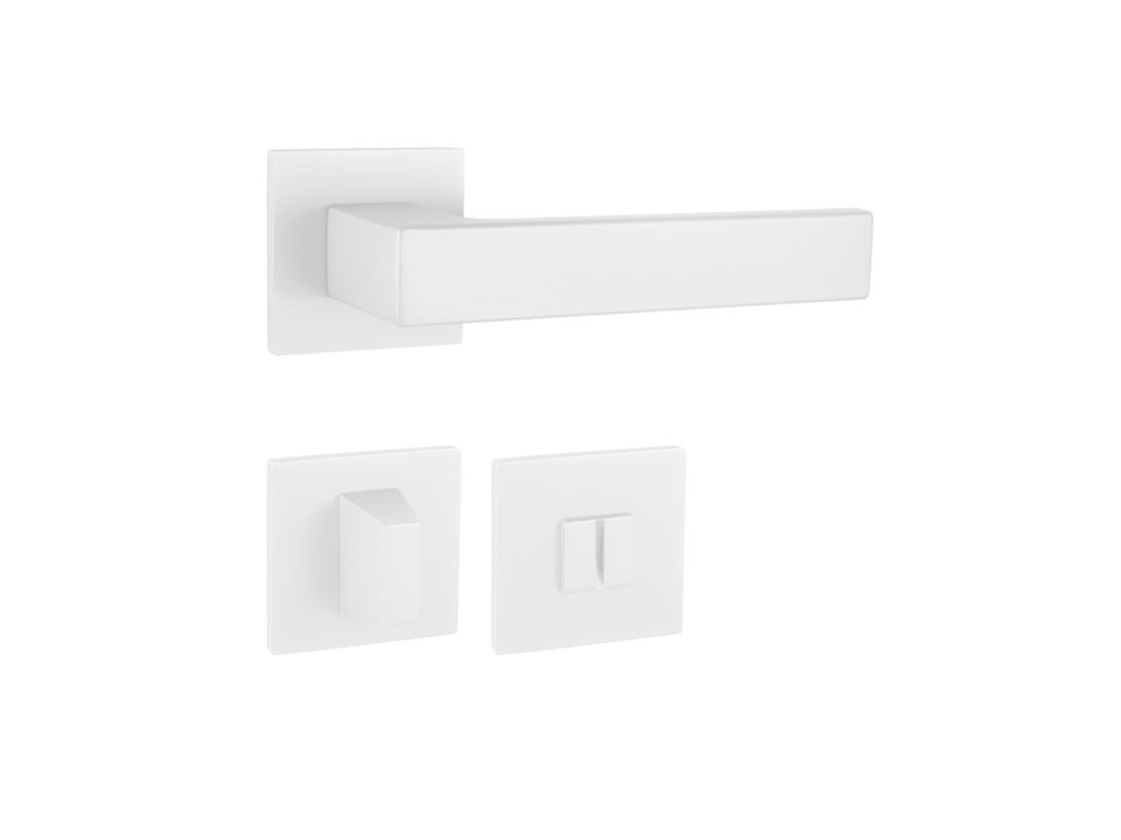 Rozetová kľučka na interiérové dvere s hranatou rozetou je vyrobená z materiálov vysokej kvality - zamak a je povrchovo upravená. Rozeta má rozmery 52 mm x 52 mm a hrúbku len 5 mm.