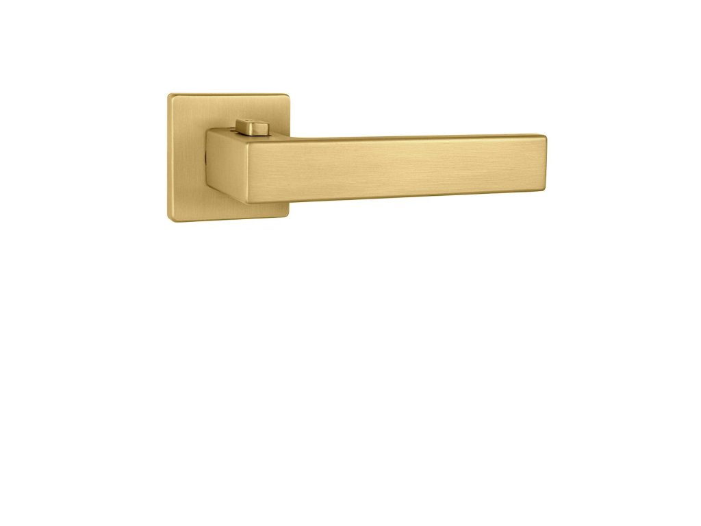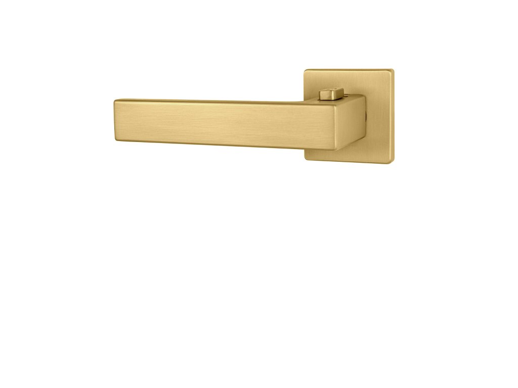 Rozetová kľučka na interiérové dvere s hranatou rozetou je vyrobená z materiálov vysokej kvality - zamak a je povrchovo upravená. Rozeta má rozmery 52 mm x 52 mm a hrúbku len 7 mm.