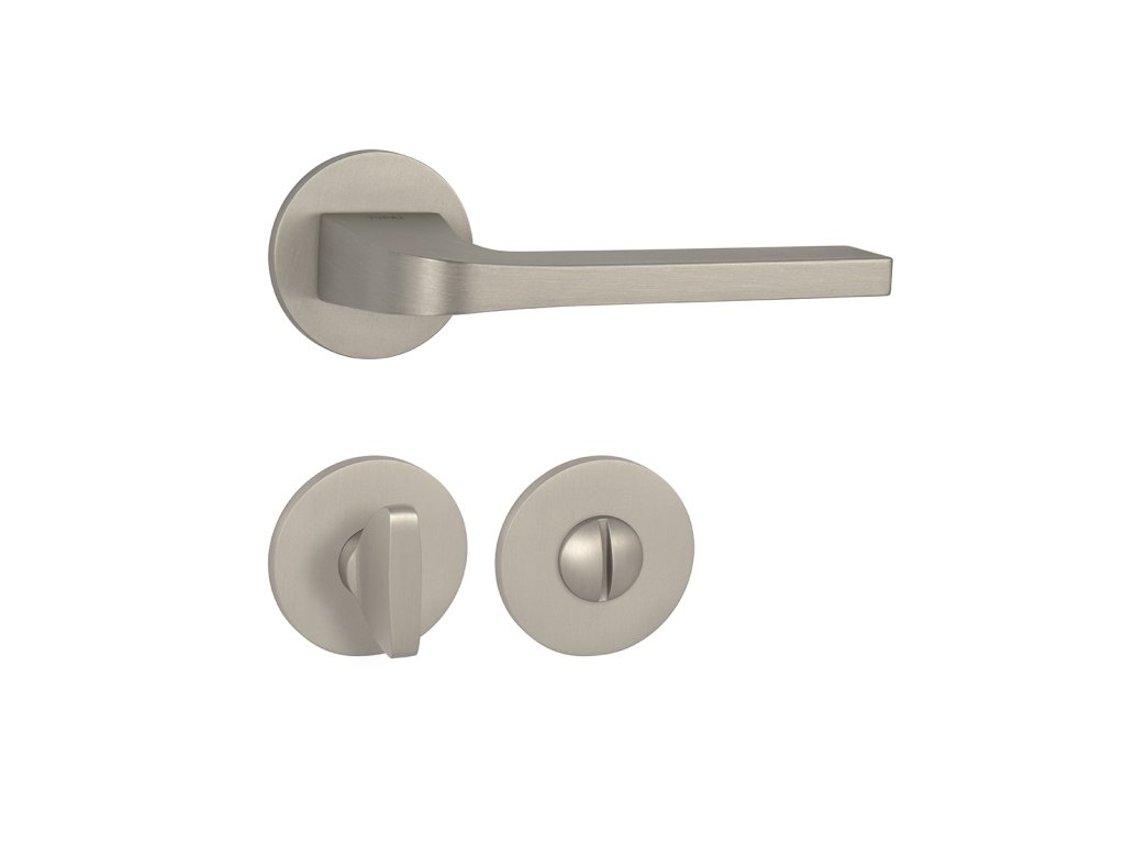 Rozetová kľučka na interiérové dvere s okrúhlou rozetou je vyrobená z materiálov vysokej kvality - zamak a je povrchovo upravená. Rozeta má priemer 52 mm a hrúbku len 5 mm.