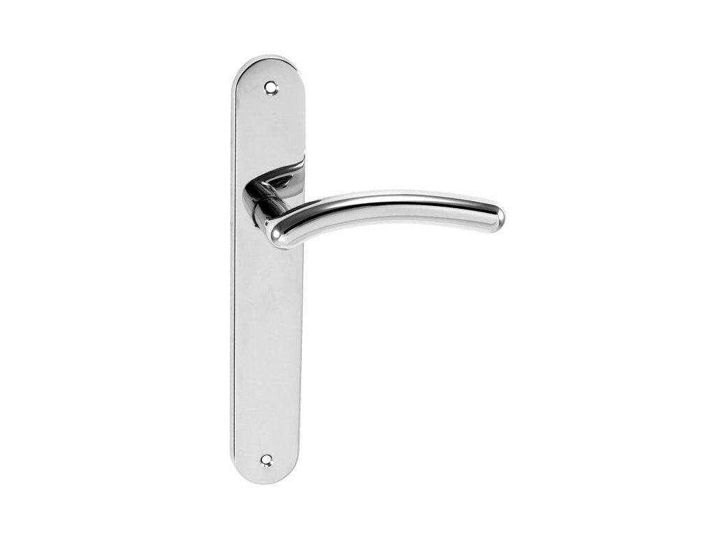 Štítová kľučka na interiérové dvere s oválnym štítom je vyrobená z materiálov vysokej kvality - zamak a je povrchovo upravená. Oválny štít má rozmery 40 mm x 243 mm a kľučka obsahuje vratný mechanizmus.
