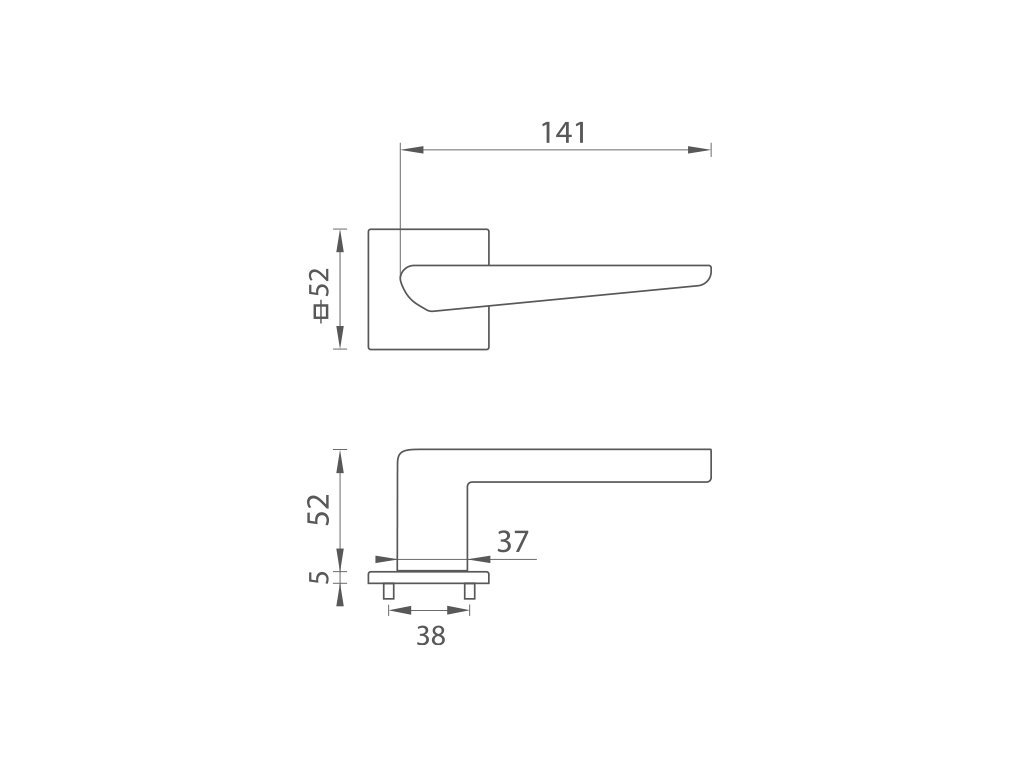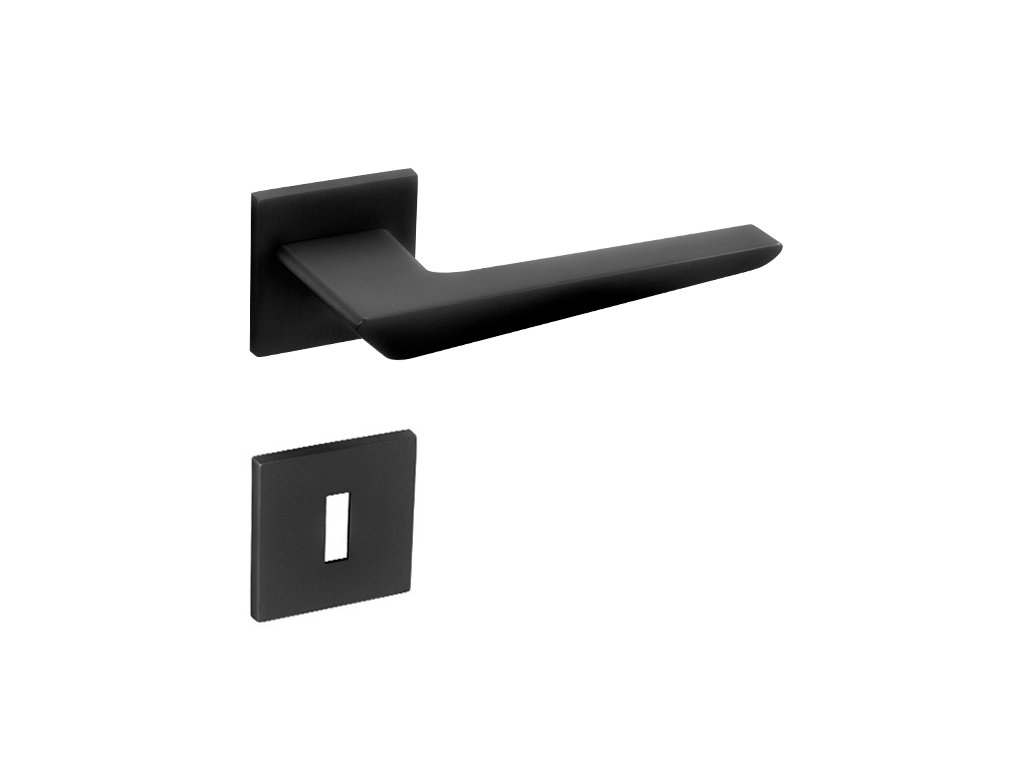Rozetová kľučka na interiérové dvere s hranatou rozetou je vyrobená z materiálov vysokej kvality - zamak a je povrchovo upravená. Rozeta má rozmery 52 mm x 52 mm a hrúbku len 5 mm.