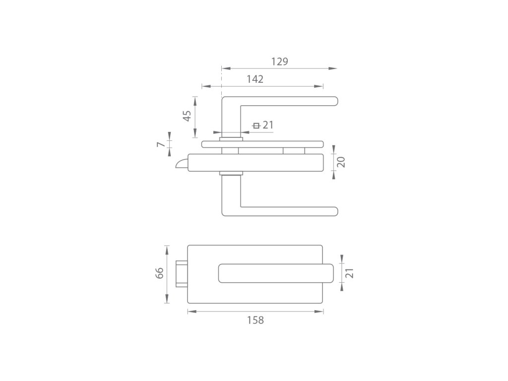 Zámok je vhodný pre sklenené dvere s hrúbkou 8 – 10 mm. Otvor pre kľučku obsahuje vymedzovací mechanizmus pre maximálne eliminovanie vôle štvorhranu. Mechanizmus zámku umožňuje nastavenie sily pružiny a napomáha udržiavaniu kľučky v horizontálnej polohe.