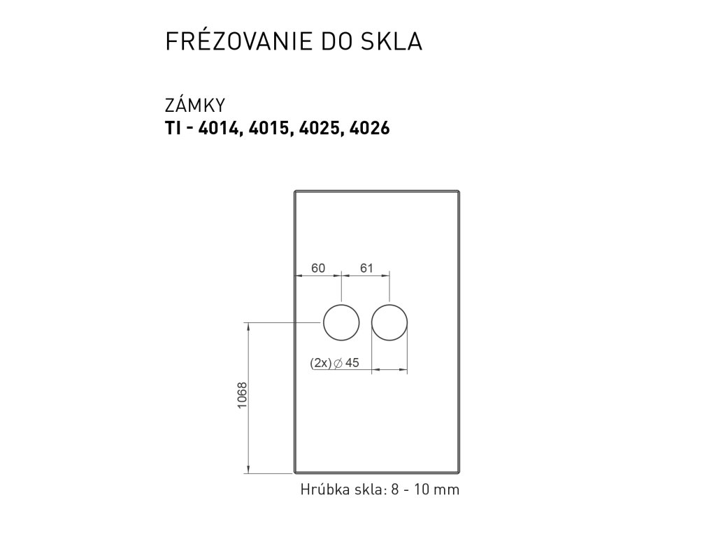 Zámok je vhodný pre sklenené dvere s hrúbkou 8 – 10 mm. Otvor pre kľučku obsahuje vymedzovací mechanizmus pre maximálne eliminovanie vôle štvorhranu. Mechanizmus zámku umožňuje nastavenie sily pružiny a napomáha udržiavaniu kľučky v horizontálnej polohe.
