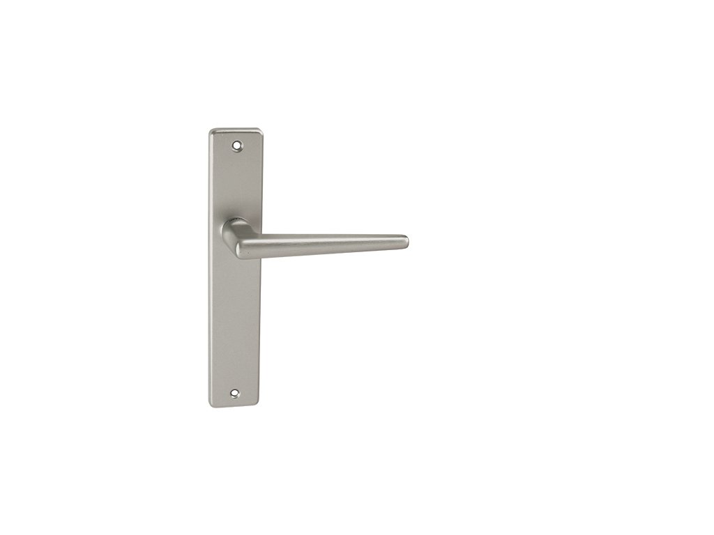 Štítová kľučka na interiérové dvere s dlhým hranatým štítom je vyrobená z hliníka a je povrchovo upravená. Dlhý hranatý štít má rozmery 40 mm x 220 mm a kľučka neobsahuje vratný mechanizmus.