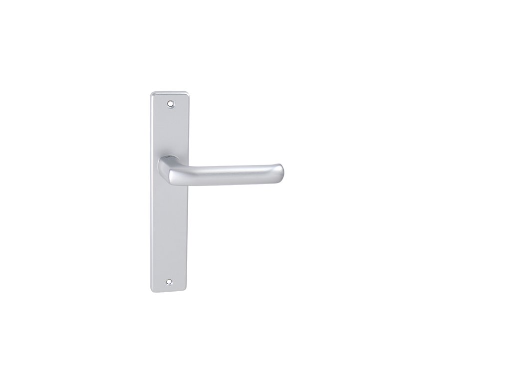 Štítová kľučka na interiérové dvere s dlhým hranatým štítom je vyrobená z hliníka a je povrchovo upravená. Dlhý hranatý štít má rozmery 40 mm x 220 mm a kľučka neobsahuje vratný mechanizmus.