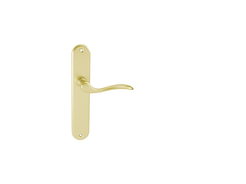 Štítová kľučka na interiérové dvere s dlhým oválnym štítom je vyrobená z hliníka a je povrchovo upravená. Dlhý oválny štít má rozmery 40 mm x 218 mm a kľučka neobsahuje vratný mechanizmus.