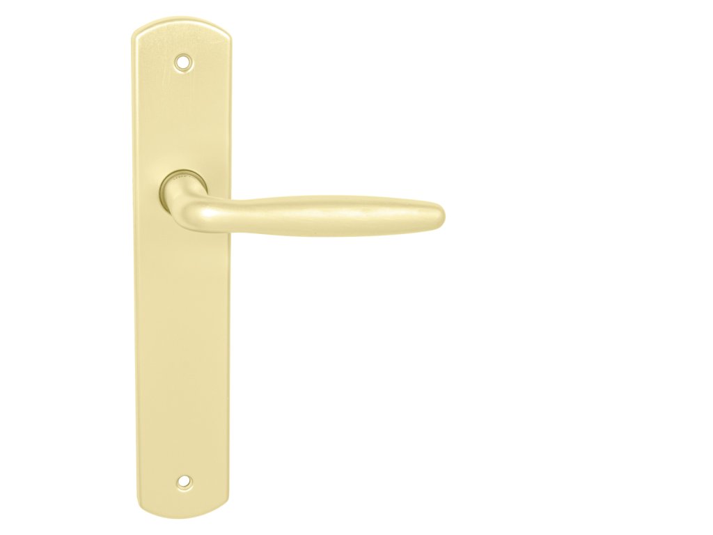 Štítová kľučka na interiérové dvere s oválnym štítom je vyrobená z hliníka a je povrchovo upravená. Kľučka neobsahuje vratný mechanizmus.