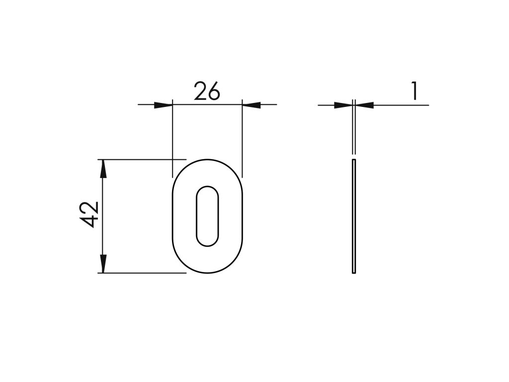 Úzka oválna rozeta je vyrobená z kvalitného materiálu zamak a je povrchovo upravená. Rozeta má rozmer 26 x 42 mm a hrúbku 1 mm. Rozeta má oválny otvor pre interiérový kľúč (BB) alebo otvor pre cylindrickú vložku (PZ). Balenie obsahuje 2 kusy roziet (pár). Rozety je možné kombinovať s ktoroukoľvek kľučkou z kolekcie NUDA.