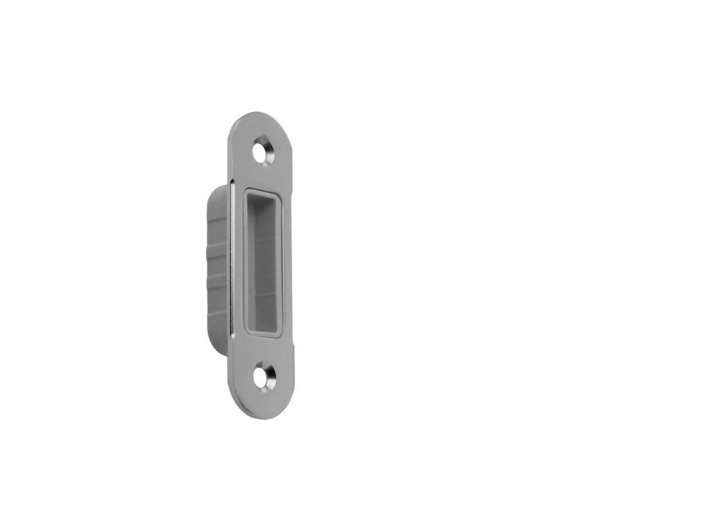 Protiplech oblý k zámku na dvere VR má rozmery 22 mm x 82 mm a hrúbku 2 mm. Zádlab má rozmery 13 mm x 47 mm.