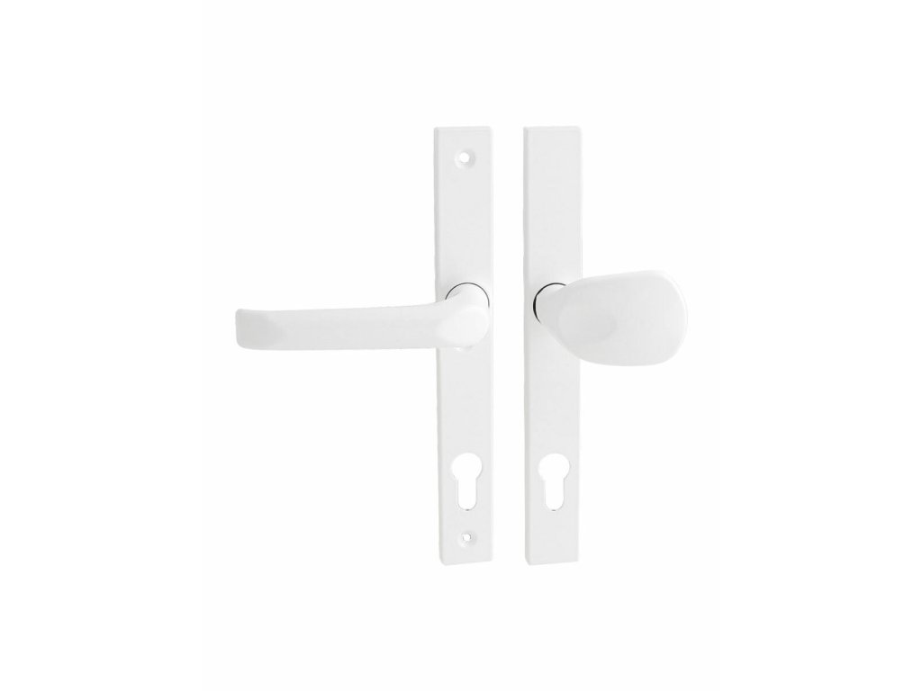 Štítová kľučka na vchodové a bezpečnostné dvere so spevneným hranatým úzkym štítom bez prekrytia cylindrickej vložky je vyrobená z hliníka a je povrchovo upravená. Kľučka je vhodná aj na plastové dvere. Hranatý úzky štít má rozmery 30 mm x 240 mm a hrúbku 10 mm.