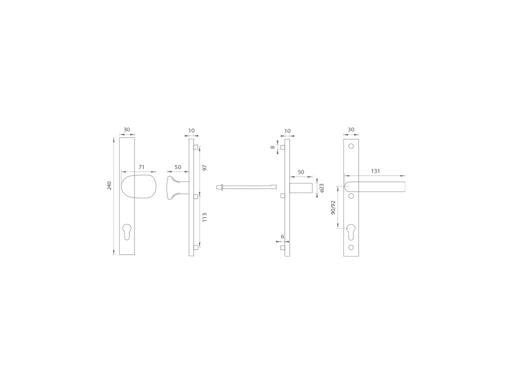 Štandardná rozteč kovania je 92 mm. Alternatívnu rozteč 90 mm získame otočením štvorhranu 6 x 8 mm o 90°. Štvorhran 6 x 8 mm je súčasťou balenia kovania v rozteči 90mm.