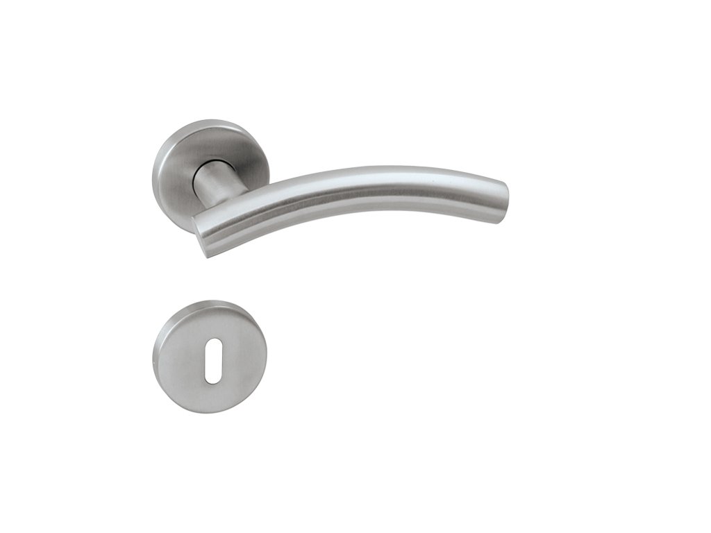 Rozetová kľučka na interiérové dvere s okrúhlou rozetou je vyrobená z vysokokvalitnej nehrdzavejúcej ocele, známej ako nerez a je povrchovo upravená.